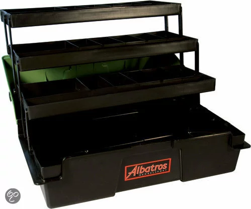 De Albatros Viskoffer met 2 laden is ideaal om je materiaal schoon, droog en georganiseerd naar de waterkant te vervoeren. De viskoffer is voorzien van een spatwaterdicht afsluitend deksel, automatisch openend ladesysteem en ingebouwde ladesteunen. Het handvat van deze viskoffer ligt zeer prettig in de hand. Geen metalen delen dus geheel roestvrij.