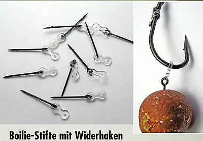 Boilie-pennen met weerhaken Duw de pen eenvoudig door de boilie of pellet en bevestig deze aan de haak met de siliconenring door 2 kleine weerhaken de boilie / pellet /mais wordt op de haak gehouden eenvoudig te bevestigen.