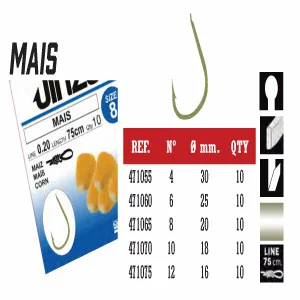 De onderlijnen zijn voorzien van haken met een ruime haakbocht. Dankzij de ruime haakbocht passen de maiskorrels perfect op de haak!