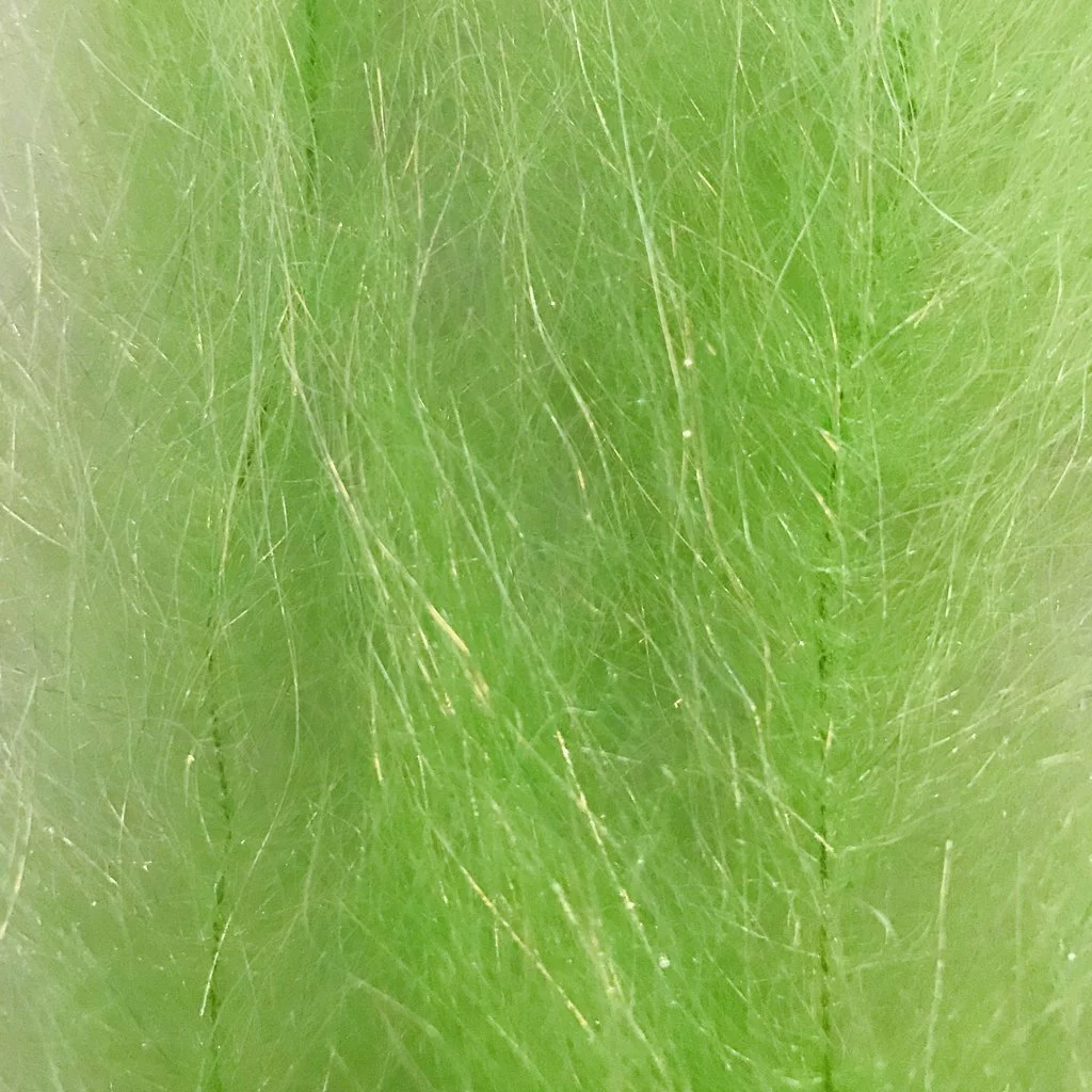 Dit is een prachtige brush met heel lange fibers eneen schitterende flash. Ideaal voor het binden van koppen van grote zoutwater streamers, maar kan ook gebruikt worden voor roofblei streamertjes: 2 à3 wikkelingen is genoeg, je vlieg is al bijna klaar!