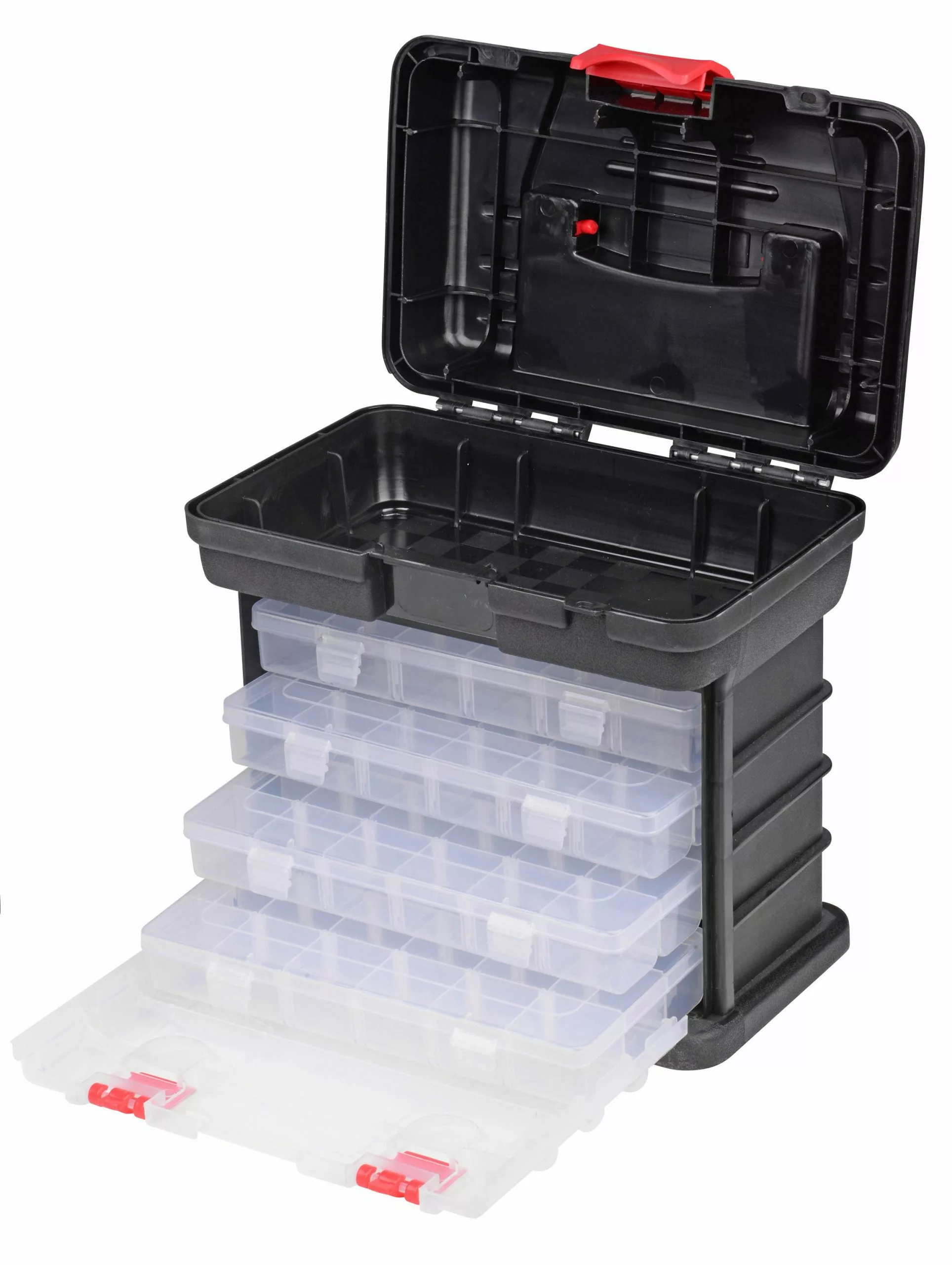 De Power Catcher Lure Tower is gemaakt van superdegelijk en stootvast polymeer materiaal. Het compacte formaat en het ingebouwde ergonomische handvat maken de Lure Tower bijzonder geschikt om overal mee naar toe te nemen. Inclusief 4 tackleboxen en groot compartiment aan de bovenkant voor het opbergen van grote spullen zoals onthaakgereedschap etc.
